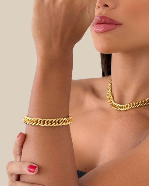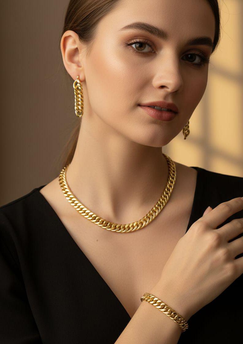 Style that lasts. ✨ Achieve the ultimate "Clean Girl" aesthetic with our Curb Chain Set. This 3-piece ensemble gives you the heavy gold look without the maintenance.